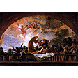 Se muestra el milagro en que San Antonio resucita a un hombre asesinado para interrogarle y probar con ello la inocencia de su padre, falsamente acusado de esa muerte. La escena ocupa toda la cúpula, de 6 m de diámetro. Un segundo conjunto está compuesto por una apoteosis de ángeles que ocupan pechinas, muros de arranque y la media cúpula del altar mayor con el símbolo de la Santísima Trinidad. La escena principal se resuelve con los testigos del milagro alrededor del anillo de la cúpula, en un balcón al que asoman como espectadores gentes comunes, de la calle. La escena religiosa se convierte así en algo tan popular como los fieles que frecuentaban la ermita. El eje central son San Antonio y el resucitado. Todo se desarrolla sobre un amplio fondo de paisaje de cielo azul, nubes y árboles; con niños que juguetean sobre la balaustrada, mujeres que charlan entre sí y personajes gesticulantes, contrapuestos, en los que se mezclan asombro y devoción . La pintura es un fresco con pinceladas al temple y se conoce la factura del comerciante que vendió los colores a Goya : ocre claro, ocre oscuro, albín fino molido, tierra negra, esmalte, tierra roja, sombra de Venecia, verdacho fino, hormaza, bermellón de la China del Real Estanco, tierra roja, minio, negro fino de marfil, añil de flor, azul de Molina, ocre de Siena, carmín superfino de Londres, azul de Inglaterra, laca superfina y negro humo. La concepción espacial es herencia de Tiépolo. Las pinceladas sueltas, largas, vigorosas, se yuxtaponen creando atmósfera, alcanzando un efecto de modernidad que se toma como punto de arranque del impresionismo goyesco. BibliografíaVIÑAZA, Conde de la. Goya, su tiempo, su vida, sus obras. Madrid 1887.LAFUENTE FERRARI, E. Goya : Les fresques de San Antonio de la Florida. Lausana, 1955. GASSIER, P- WILSON, J. Vida y obra de Goya. Barcelona, 1974 MORALES Y MARIN, J.L. Goya : Catálogo de Pintura. Zaragoza, 1994. Marisa Cancela |